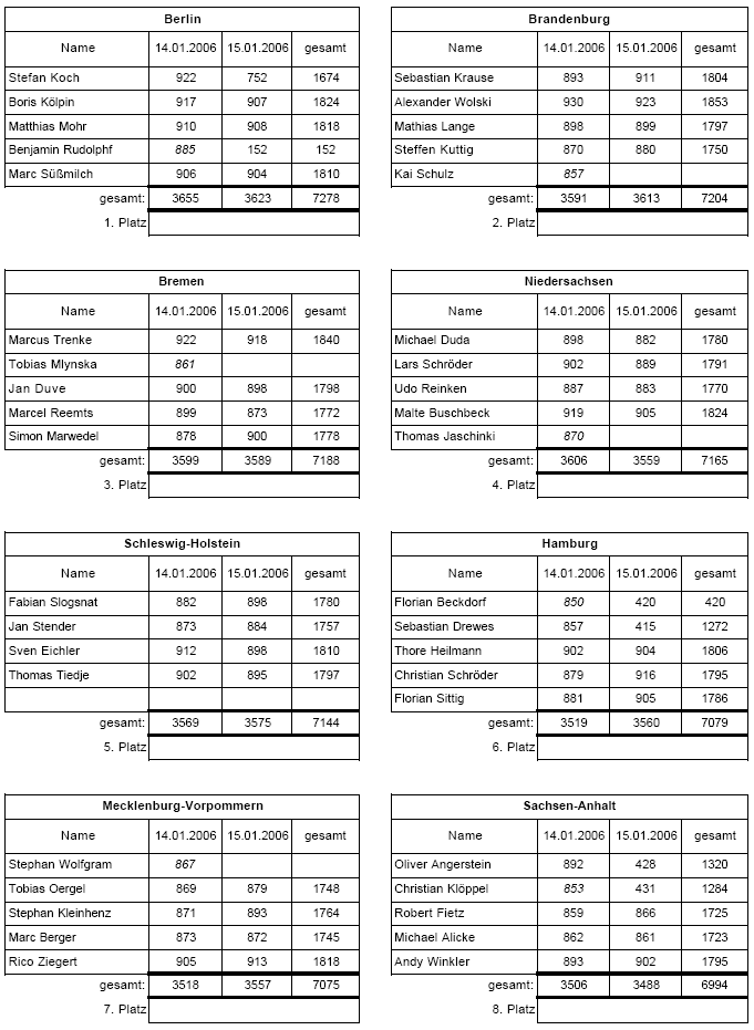 Ländervergleichsspiele der Juniorinnen und Junioren am 14. und 15. Januar 2006 in Hennigsdorf