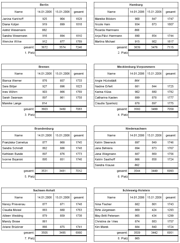 Ländervergleichsspiele der Juniorinnen und Junioren am 14. und 15. Januar 2006 in Hennigsdorf