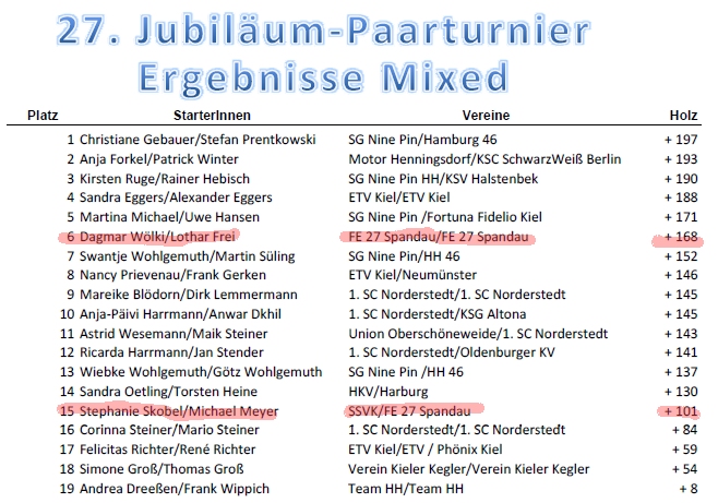 1. SC Norderstedt - 27. Jubiläums Paarturnier